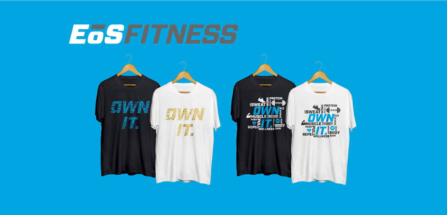 The Project: Eos Fitness is a growing gym chain. They wanted to explore creating some branded clothing that people would enjoy wearing not just inside the gym but outside as well. To accomplish this, I put together two typographic collages centered around the phrase "Own It." and used their font and colors to keep the branding consistant despite the content being quite different from their other designed materials.